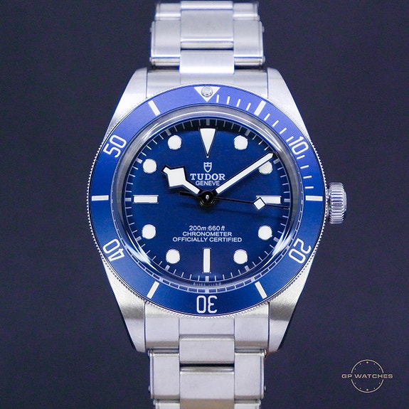 Tudor Black Bay 54 reference 79000N. Den nyere version af Black bay i den mindre str. på 37 mm. En lidt mindre, men meget elegant str. ift de større på 39 eller 41 mm. Uret fremstår i god stand og kommer på gummiremmen. Med boks og papirer fra 2025. Aktuel listepris er 30.100 kr.