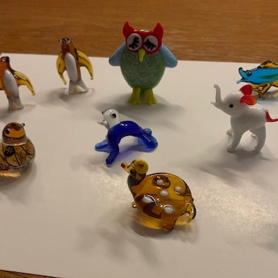 Små glas dyrefigurer fra Ibsen Design. Pris pr. stk.