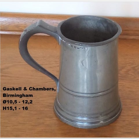 Barselspand. Barok. Højde ned hank 29 cm. Stemplet H. C. Reincke, Rostock 1799.