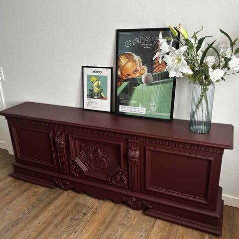 Skænk, fyrretræ, b: 127 d: 39 h: 105, brunbejset skænk til vin