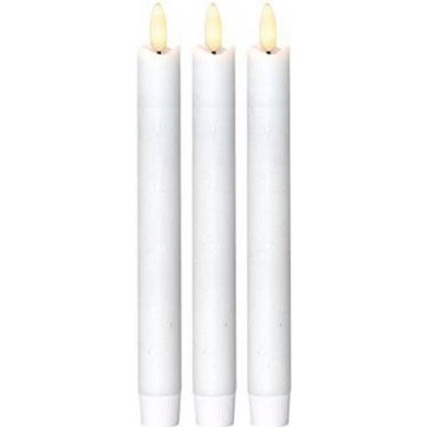 Kunstig stearinlys med flakkende flamme i mørkgul nuance. Sæt med 3 stk.