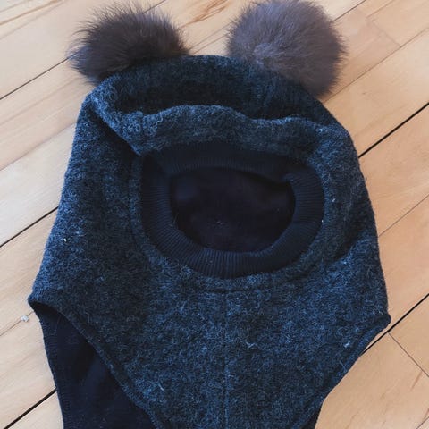 Super flot hue i grå med kvast. 2 trykknapper, så huen kan reguleret i størrelse.