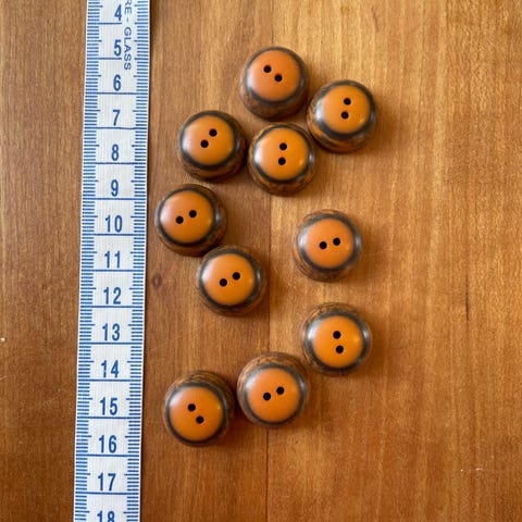 10 forskellige billeder med brune plastikknapper