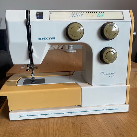 Riccar symaskine ideel til strækstoffer og flere lag. Stærk og pålidelig. Nem at betjene.Renset og smurt.