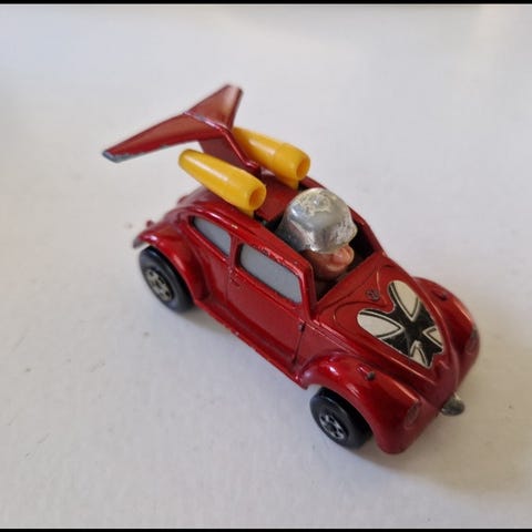 1974 Matchbox Speed Kings K-51 Barracuda, England, Lesney Racecar #5 STP Oil. 12 cm lang. Spoileren er gået fra i den ene side, men ellers få brugsspor i forhold til alder. Ann. nr. L614