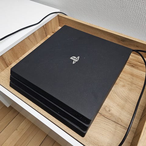 Sony Playstation pro 4 spilkonsol med to trådløse controllere.