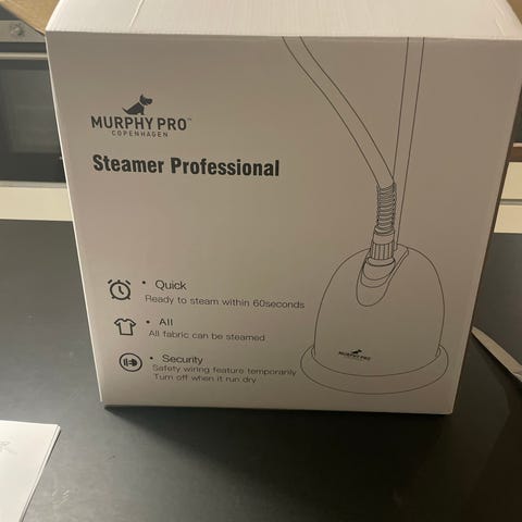 Strygebræt med damper - komplet med krave-hjælper, handske, buksesøm clip og instruktionsbog. Vandtank 2,5 l.