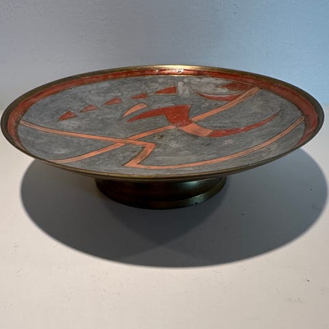 Smuk antik messing skål med fin glas indsats
