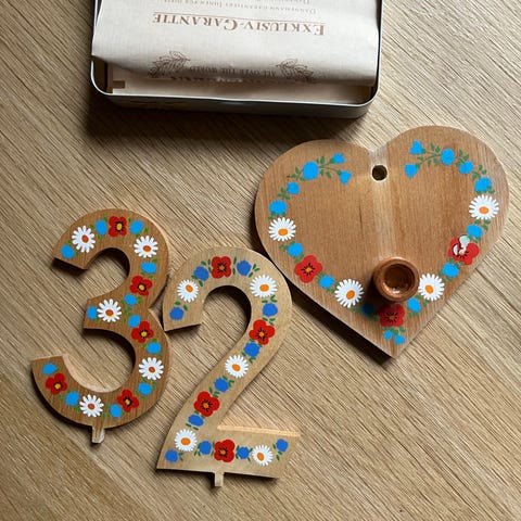 Vintage fødselsdags lysholder med 3 træringe Ø 19,5 cm. Made in Germany