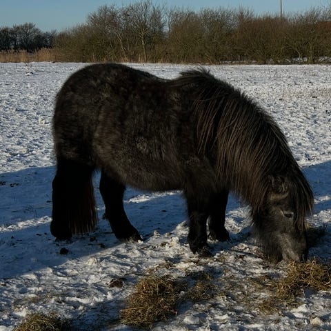 Hun er 7 år og har fået to føl. Hun ønsker sig mest bare at være avlshoppe, hvilket hun også gør rigtigt fint. To nemme folinger og kommer nemt i fol. Passer føllene rigtig fint.