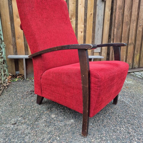 Vintage red armchair – originally from an old cinema.
