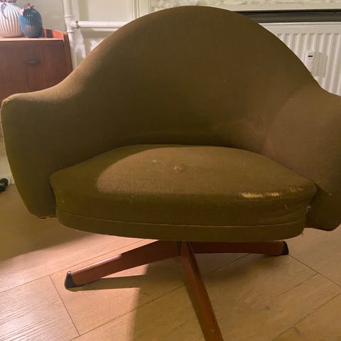 Stolen har lidt brugsspor, som passer til alderen, men den er stadig solid og i fin stand.