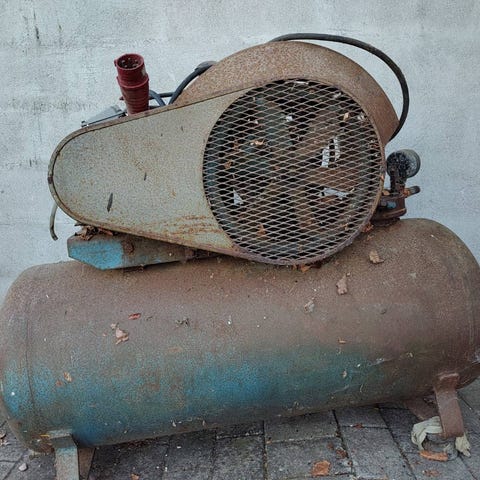 Stenhøj Kompressor 500 l, i god stand med 3 cylinder motor , drejehjul og el-boks skal repareres