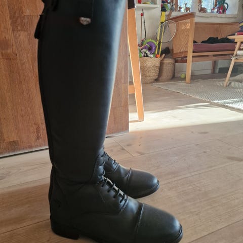Leggins sorte, størrelse 10, ved ikke hvad det svarer til men passede min søn da han passede støvlerne.