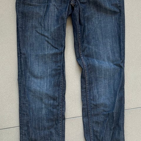 H&M Børnejeans i størrelse 164, farve blå, unisex model. Fremstillet i denimmateriale med justerbar linning og klassisk lukkemekanisme med knap og lynlås. Designet til børn og velegnet til daglig brug.
