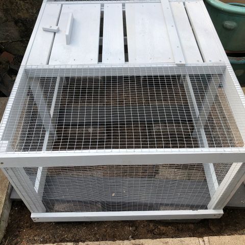 NY lavet, solid, løbegård med stor åbning i top. Længde 134 cm. Brede 92 cm. Højde 52 cm. Net i bunden kan monteres mod betaling af tillæg.