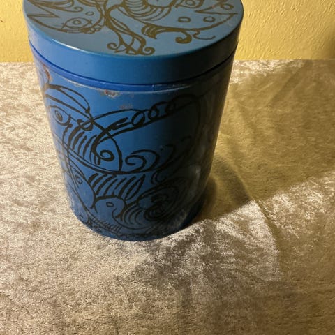 Rund dåse med julemotiv 14 cm i diameter og 7,5 cm høj