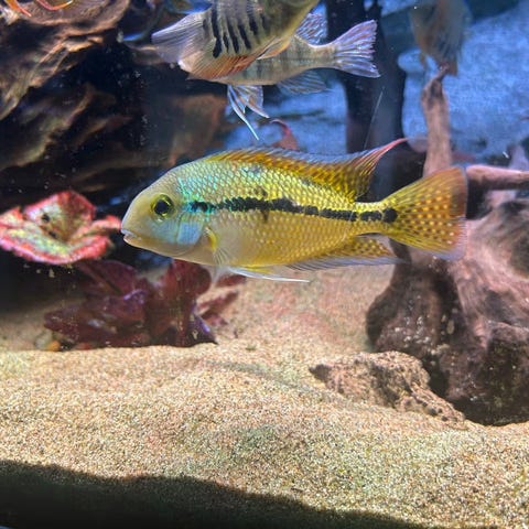 Yngel af denne meget flotte Sydamerikanske cichlide på ca. 7 cm.
