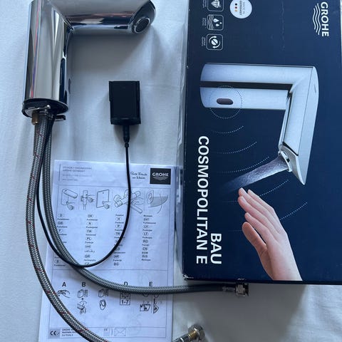 Berøringsfrit armatur fra Grohe - Bau Cosmopolitan inkl. batterihus. Brugt i 7 dage, men vi vænnede os ikke til det - sælges derfor. Købt for 1.299 kr. Sælges for 850 kr.
