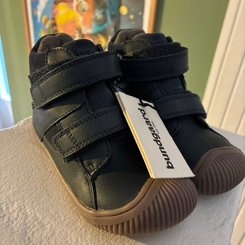 Bundgaard unisex børnesko i størrelse 27. Skoene er sorte og har velcrolukning for nem tilpasning. Sålens mønster giver godt greb. Designet til børn med fokus på komfort og funktionalitet.