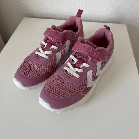 Hummel Børn Sneakers i størrelse 29, unisex model. Skoene er lyserøde med hvide detaljer og har en kombination af tekstil og syntetisk materiale. Designet til daglig brug for børn.