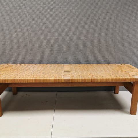 Børge Mogensen bænk i eg model 3171. Den står i orginal stand. Med brugspor på betræket, Måske man ønsker at ombetrække den ? Pris 13500kr.