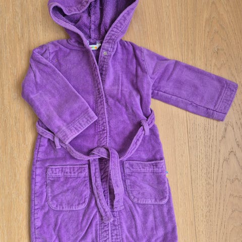 Lilla badekåbe i bomuld med hætte, knapper foran og bælte i taljen. Badekåben har lommer og er designet til komfort og funktionalitet, 120cm til længde.