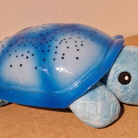 Rigtig sød skildpadde der har flere forskellige lyde, som den spiser, synger den skal på toilettet, som om den laver stort. Så gentager den også hvad man siger med lys stemme. Vi har haft mange grin og snakke om man skal huske at sige når man skal på wc. Helt nye batterier.
