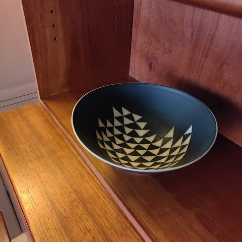 Smuk og meget anvendelig skål i dejlige turkise farver. Skålen er lavet af keramikeren Pia Green.