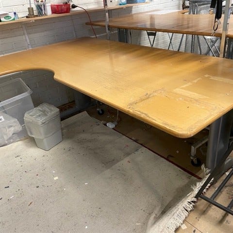 Birkemose A/S Moventi C23/C3 elektrisk hæve-sænkebord med bordplade i bøg. Bordet måler cirka 200x102 cm og har elektrisk justerbar højde via en kontrolenhed. Bordet er designet til kontorbrug og har stel med sort og krom finish. Elektrisk motor med specifikationer: 230V, 50 Hz, 240W. Fremstillet i år 2001.