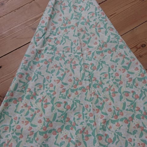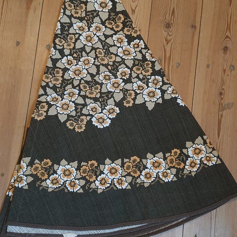 Runddug med blomster retro hvid og oliven, Rund Retro olivenfarvet dug næsten ny men af ældredato.
