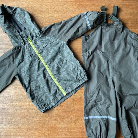 Name it Playtech termobukser i støvet blå, størrelse 104, unisex model. Bukserne er uden slid eller huller. Der ses nogle utydelige pletter (se billede 4 og 5).