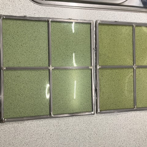 Nu har du chancen for at købe 5 ens blyindfattede forsatsvinduer med smukt farvespil.