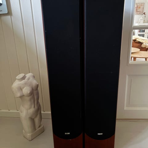 Bowers & Wilkins P6 gulvhøjttalere med træfinish. Højttalerne har en trefrekvensdriveropsætning med en gul Kevlar-mellemtone, en sort basdriver og en diskant monteret på toppen. Tilslutningerne er placeret på bagsiden med standard højttalerterminaler. Modellen er produceret i England og har en nominelt effekt på 100W. Højttalerne er designet til hjemmebrug og tilbyder en kombination af træmateriale og højttalerkvalitet. Gitteret på en ene topdiskant er løst