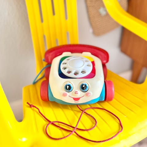 Den fineste lille legetøjstelefon fra telefonens barndom. Chamerende bliklegetøj. Med aldersrelateret patina.