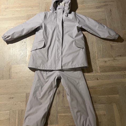 Wheat regntøj i lyserød til piger i størrelse 110. Fremstillet i vandafvisende materiale med hætte og elastiske ærmeafslutninger. Designet til at beskytte mod regn og fugt under udendørs aktiviteter.