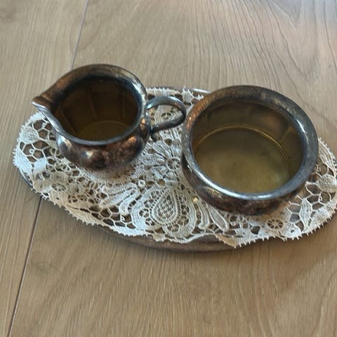 Rigtig fin sølvbakke med kande og skåle