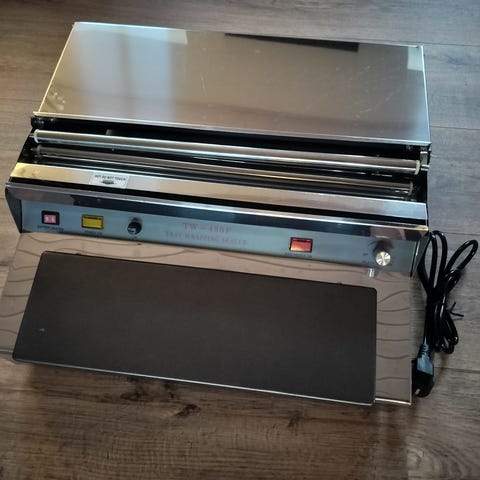 Solid og driftssikker maskine i rustfrit stål – designet til hurtig og effektiv forsegling af emballagebakker med plastfilm.