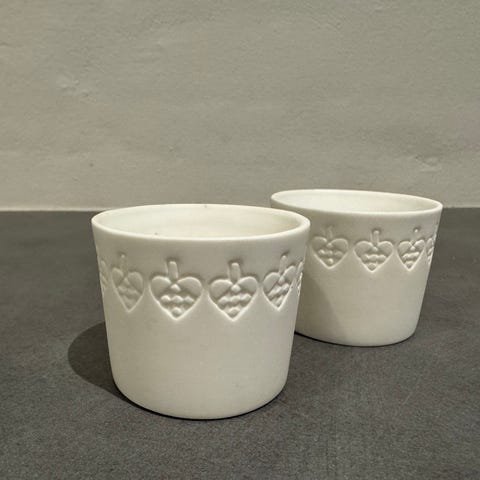 Beautiful white porcelain tealight holders from Royal Copenhagen’s Christmas Joy series. Each features a delicate relief design that comes to life when a candle is lit — creating a warm and cozy holiday glow.