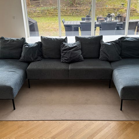 Stor velholdt sofa med chaiselong og lænestol som vi har passet godt på og ikke brugt så meget.