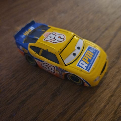 Disney Pixar Cars børnelegetøj med ratt og flere lydfunktioner. Legetøjet har forskellige knapper og kontroller, der simulerer billyde og funktioner. Designet til børn, med farverig og robust konstruktion.