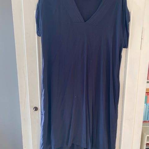 Fin mørkeblå MASAI kjole i str M. Bm ca 55cm. Længde fortil ca 96 cm, Længde bagtil ca 115cm.
