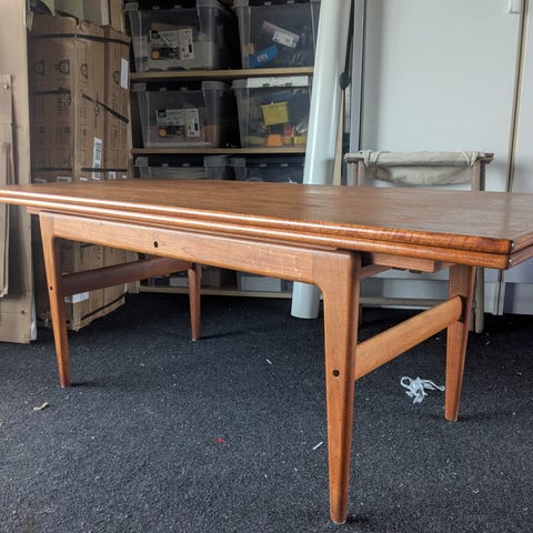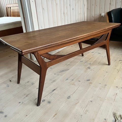 Københavnerbord/Spisebord/sofabord i teaktræ,kan stilles i højde og Brede.