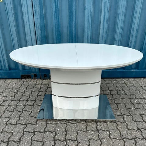 Evangeline ovalt spisebord,fra Trendrum i hvid højglans/rustfrit stål.