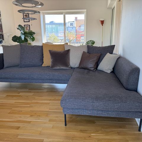 De er meget behagelige at side i. Bløde sofa med dunpuder. Ben og stel er i egetræ. De er som absolut nye, uden pletter eller tegn på brug. Alt stof er aftageligt og kan vaskes. Det er dog aldrig blevet vasket, da de er som nye.