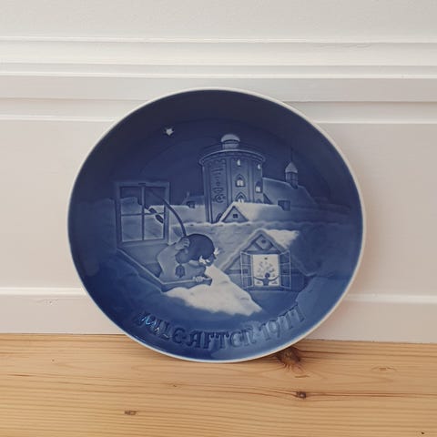 Flot platte fra Figgjo, Julen 1978. Farve blå/grå, dia. 20,5cm.