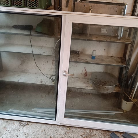 Fint ideal vindue i 2 lags glas. Det er lidt skrammet så det skal lige slibes lidt og have lidt maling hist og pist men ellers et rigtig fint vindue til sommerhus eller andet.
