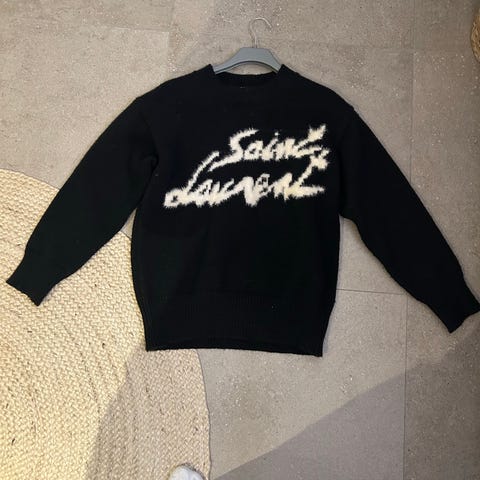 Frakke, str. XL, Yves Saint Lauren, Sort, Næsten som ny, Yves Saint Laurent frakke med bælte i sort.