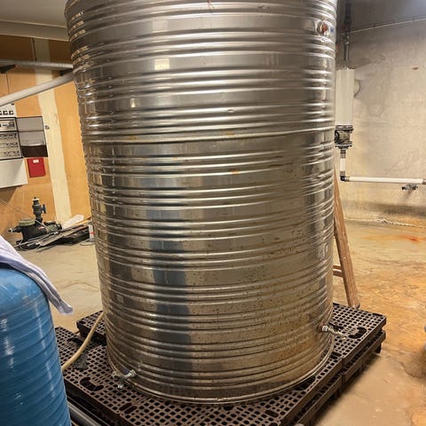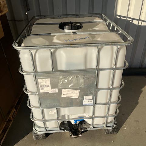 IBC Tank med kapacitet på 1000 liter, fremstillet i sort plast med metalbur for ekstra beskyttelse. Velegnet til opbevaring og transport af væsker. Udstyret med aftapningsventil i bunden for nem tømning. De er fødevaregodkendt og være brug til alkohol og så har vi rengjort dem og brugt dem til vand.