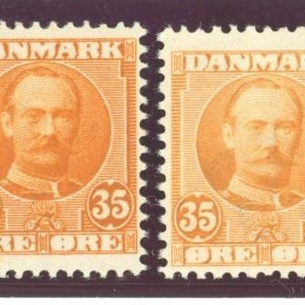 Danmark, ustemplet, Christian X 1913, Christian X 1913 Pæne ustemplet mærker, med hængsler og lim. bestående af 5 øre grøn, 10 øre rød, 15 øre Violet, 15 øre matlilla , 20 øre blå og 35 åre orange. AFA Nr 68, 69, 70, 70a, 71 og 73